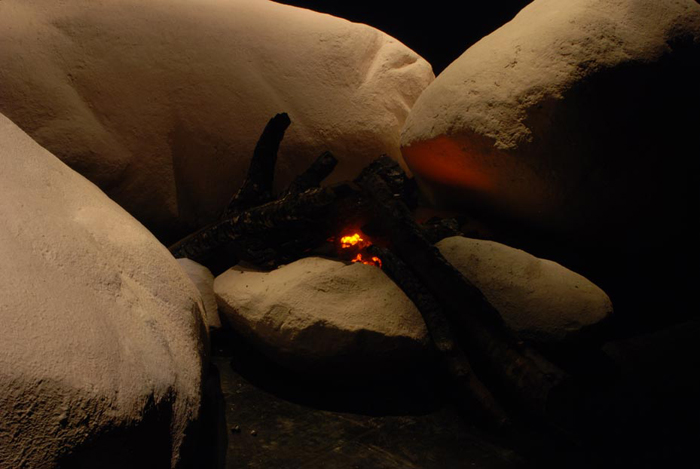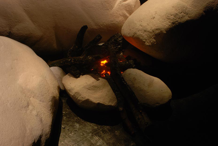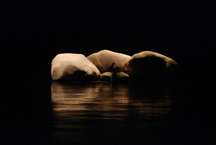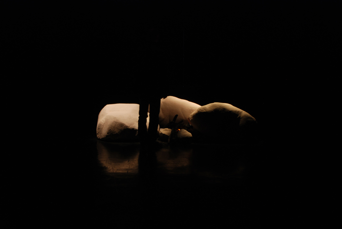 pour les spectacles intimistes. Jouant du double usage de la galerie, Briac Leprêtre met en place un décor, un accessoire, mis en valeur par l’architecture, englobant le visiteur dans une ambiance à la fois hyperréaliste et féerique. Un paysage que l’on trouverait rassurant, chaleureux et familier, s’il n’était artificiel et froid, glacé comme un cliché à la menthe.